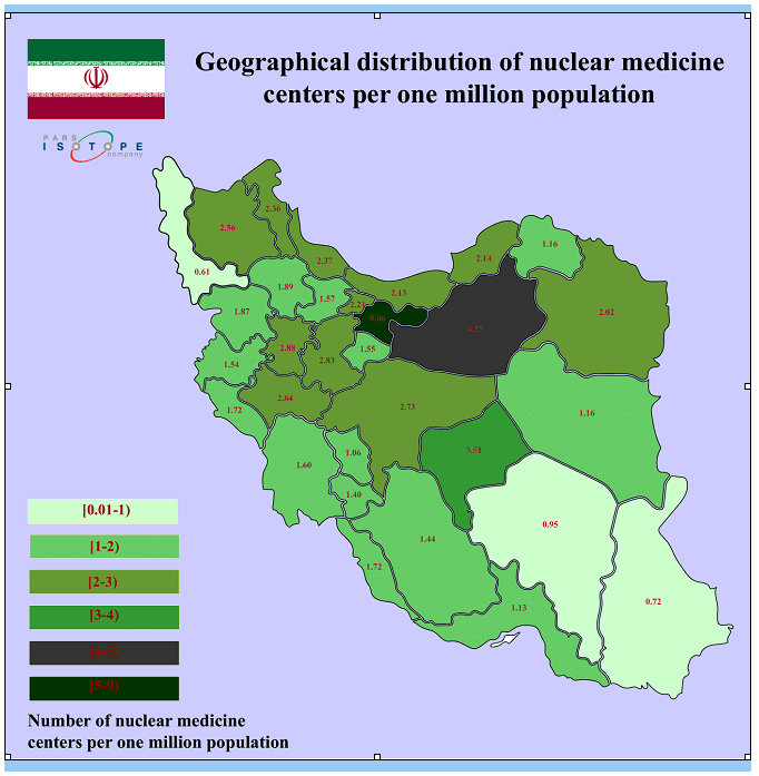 ⦁ دسترسی جمعیت به خدمات پزشکی هستهای: حدود ۰۵/۳ مرکز به ازای هر یک میلیون نفر جمعیت